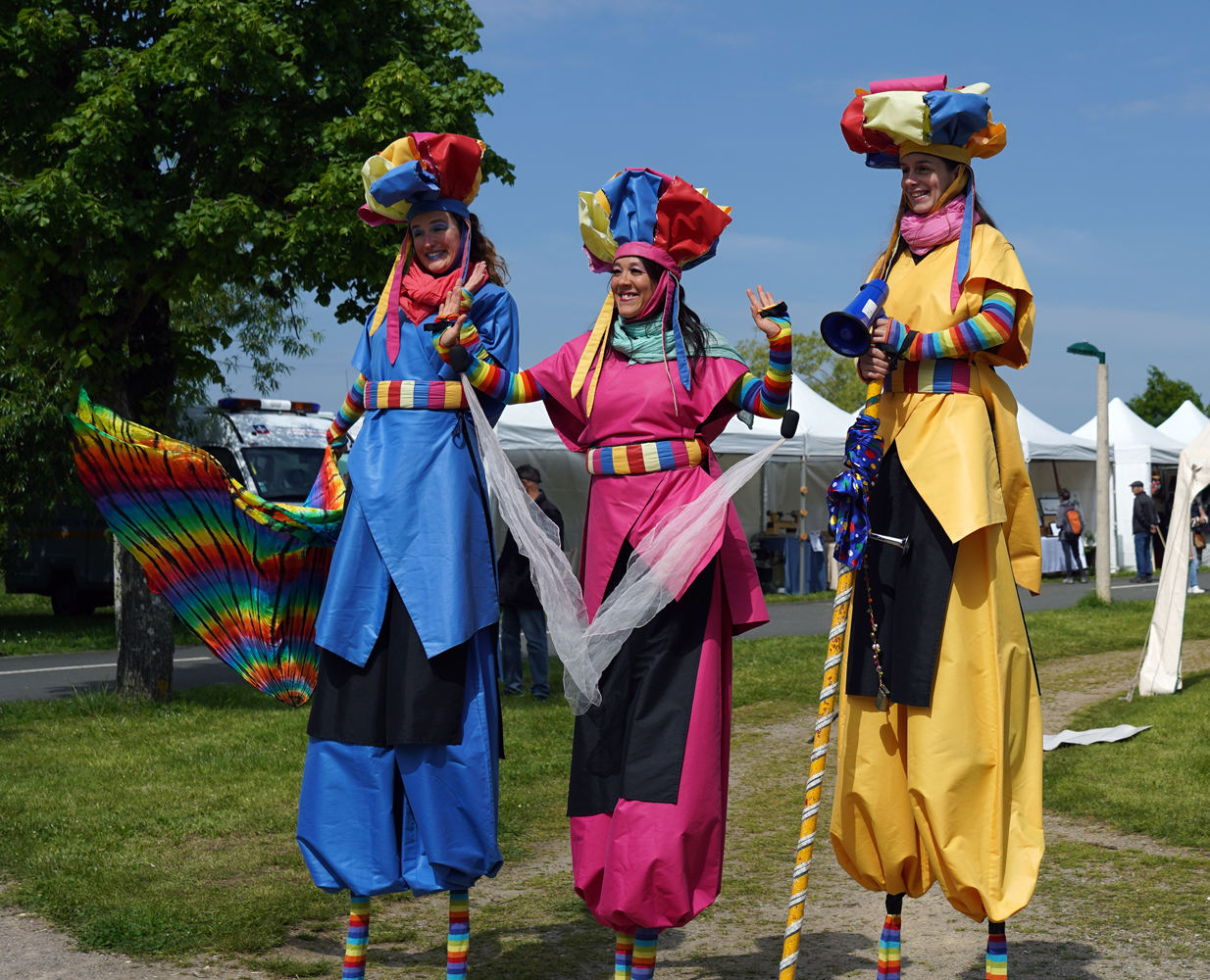 En échasses, à pied ou à vélo, les Trouble Flex sont colorés, lumineux. Ce sont des perfomer acrobates en échasses, des jongleurs, des comédiens