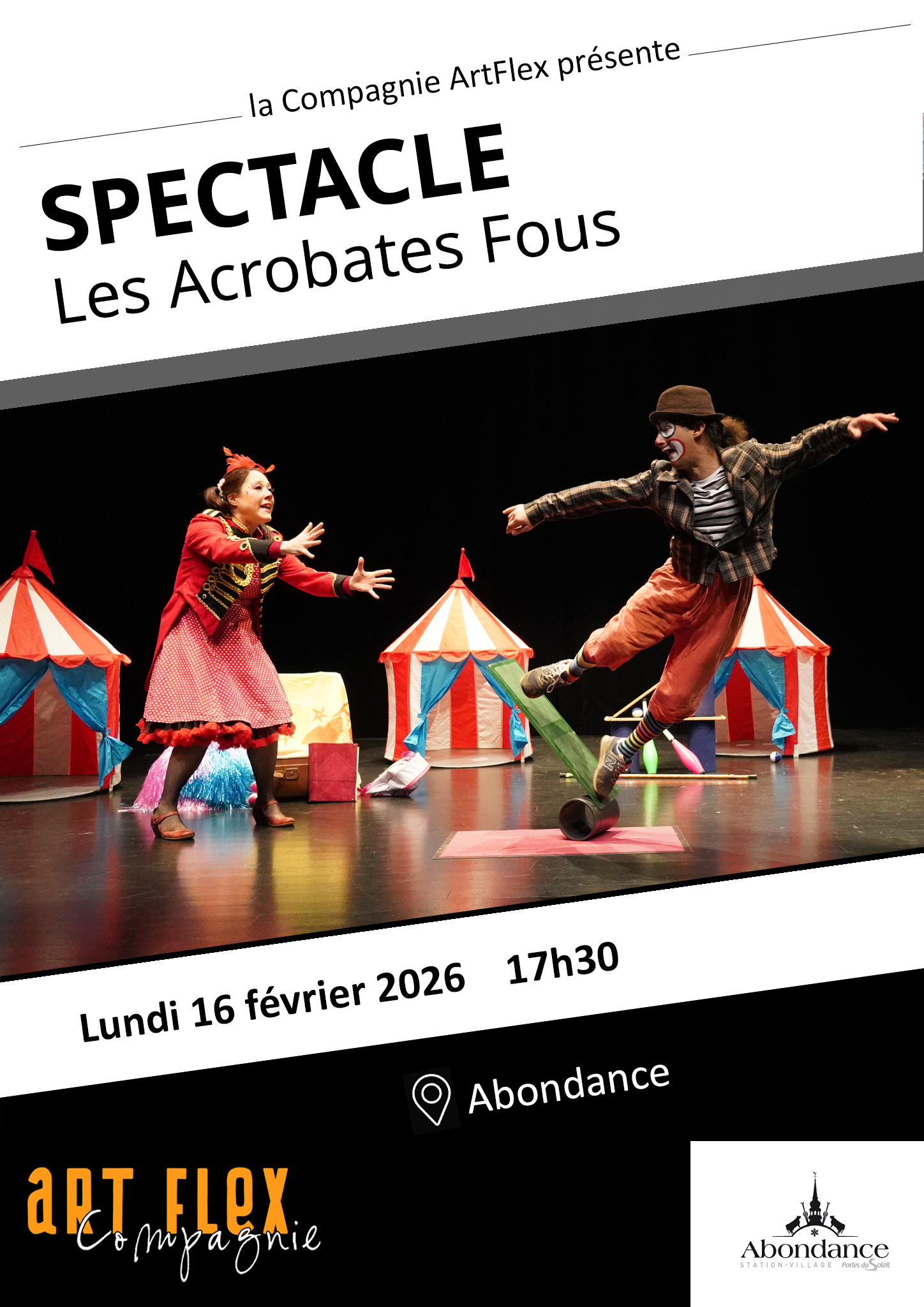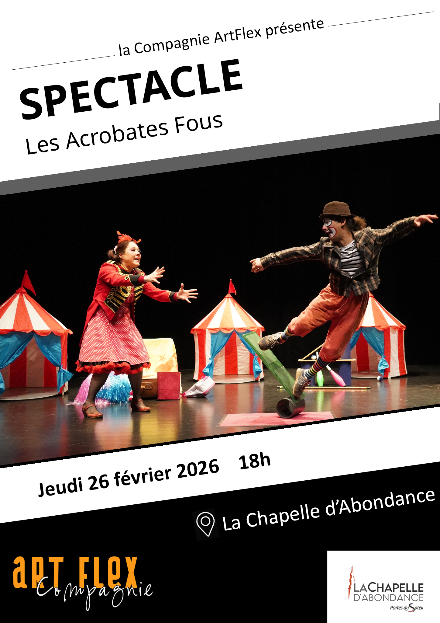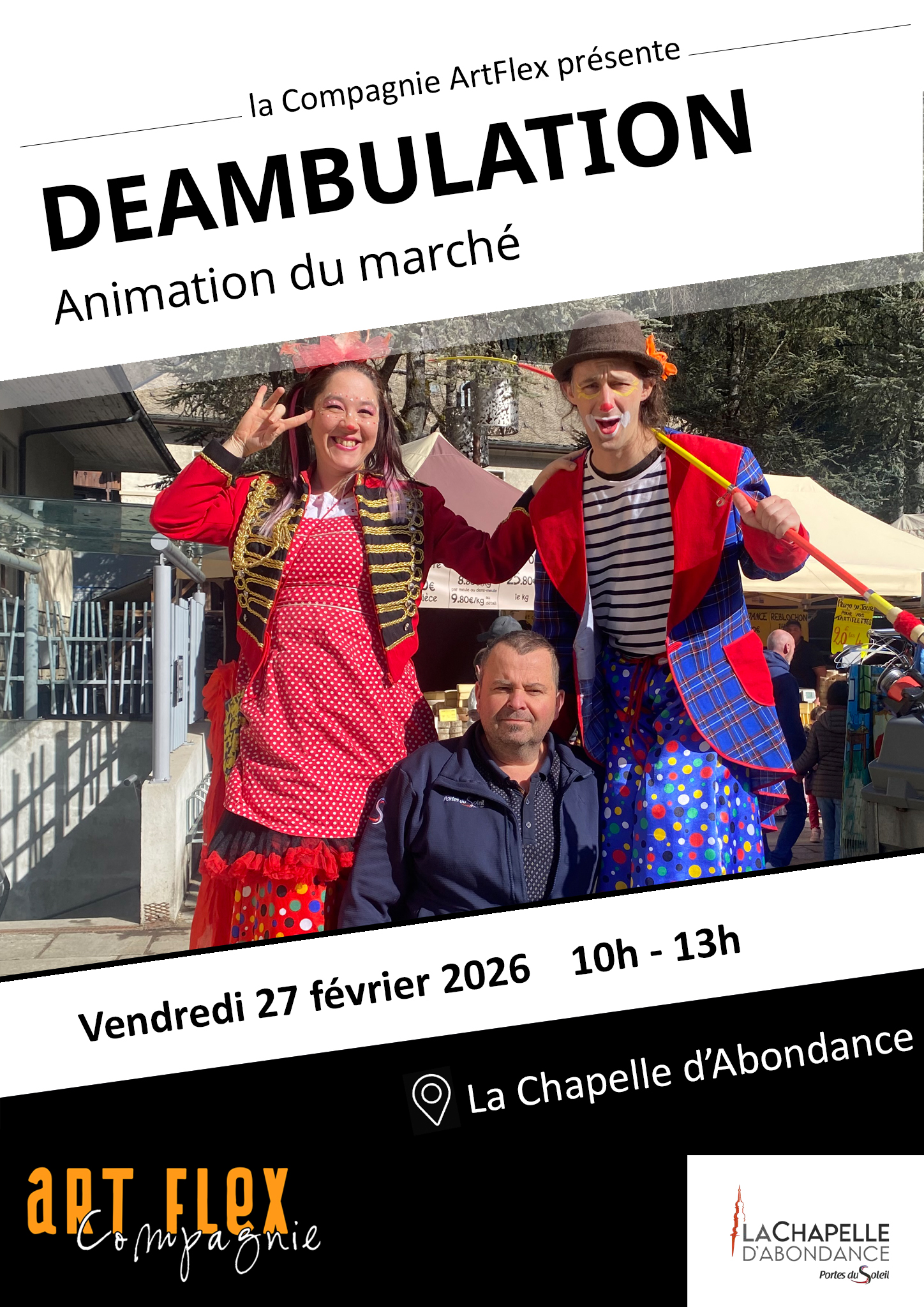 Pour la 3e année, ArtFlex revient à la Chapelle d’Abondance et cette fois pour 2 semaines de spectacles et de déambulation dans les communes d’Abondance, de Bernex et même en Suisse !